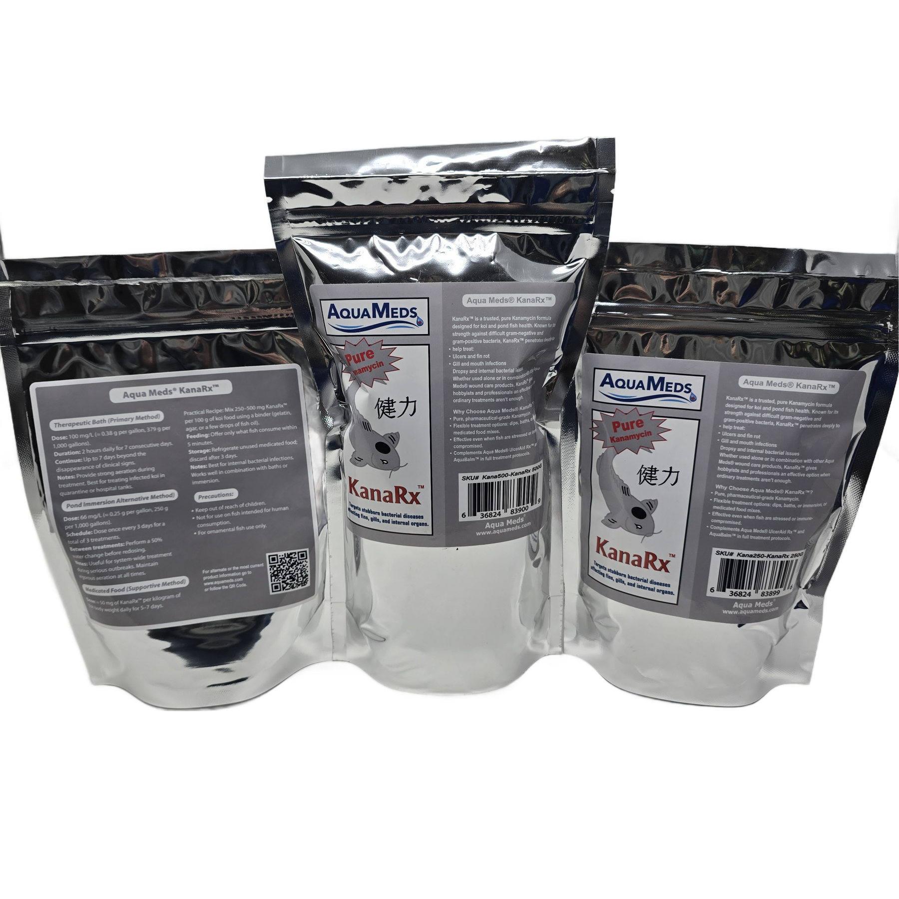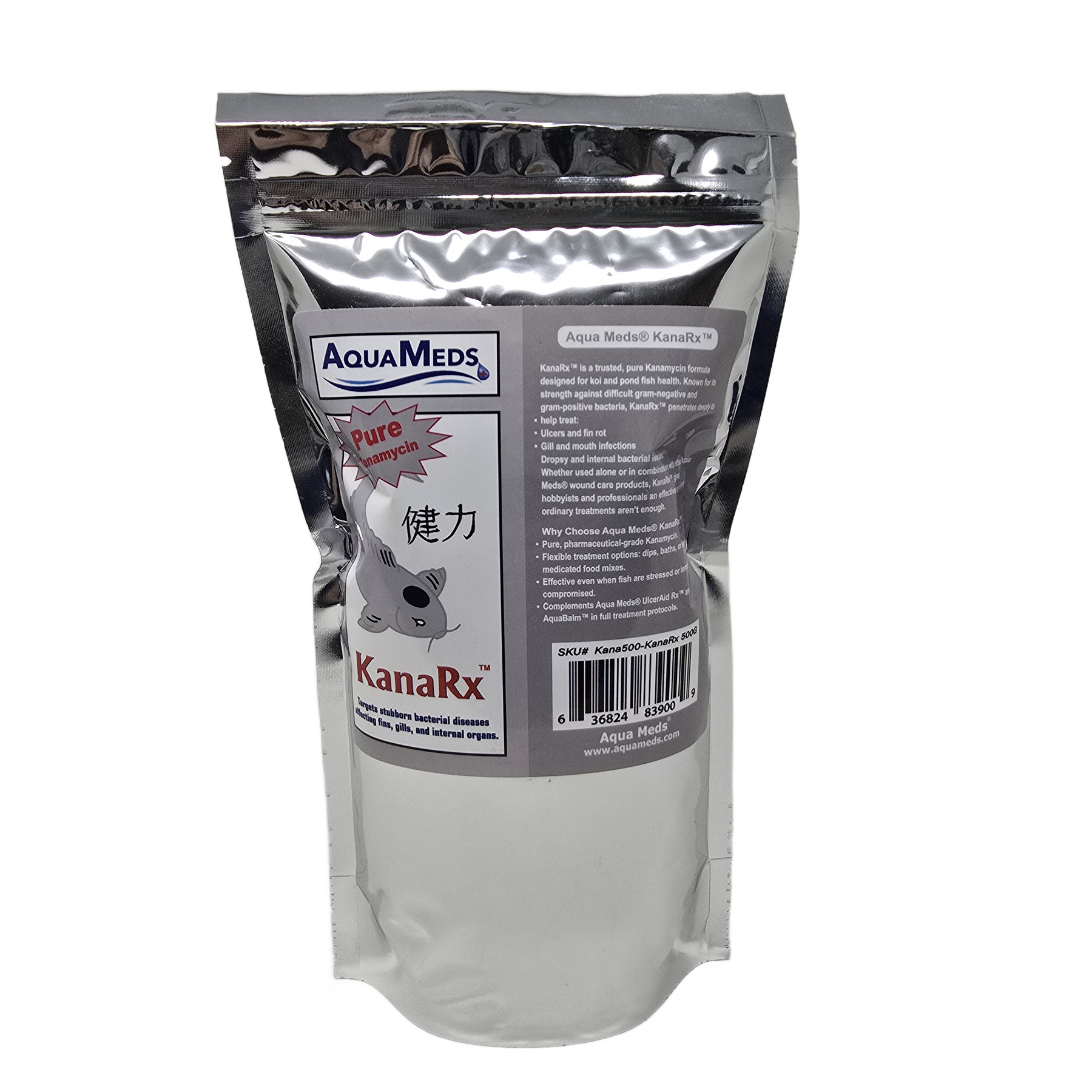 • KanaRx™ (kanamycin sulfate) – Deep, broad-spectrum antibiotic for severe, resistant, or internal infections. Can be used as a bath, pond immersion, or medicated food.